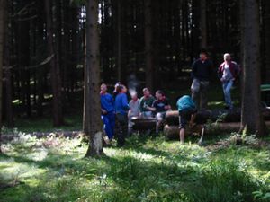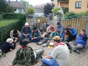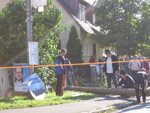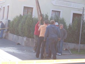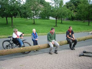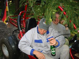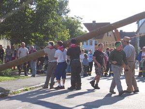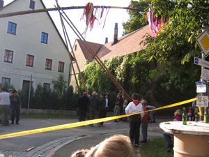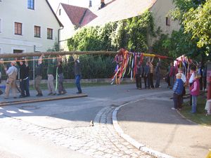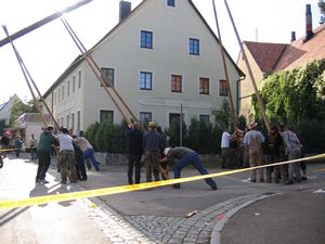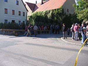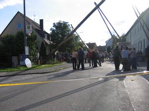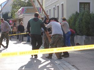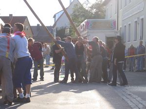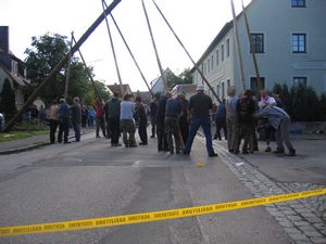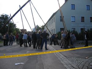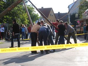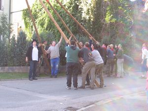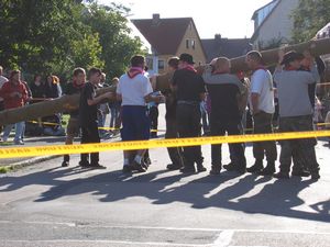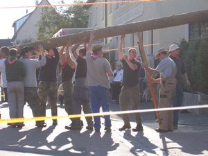 Am Kerwasamsdoch wern frie die Birkn am Griecherdenkmol zugschniedn und aufgstellt, na nu a bor organisatorische Sachen erledigt und na gehts ins Kerwabamholn.